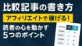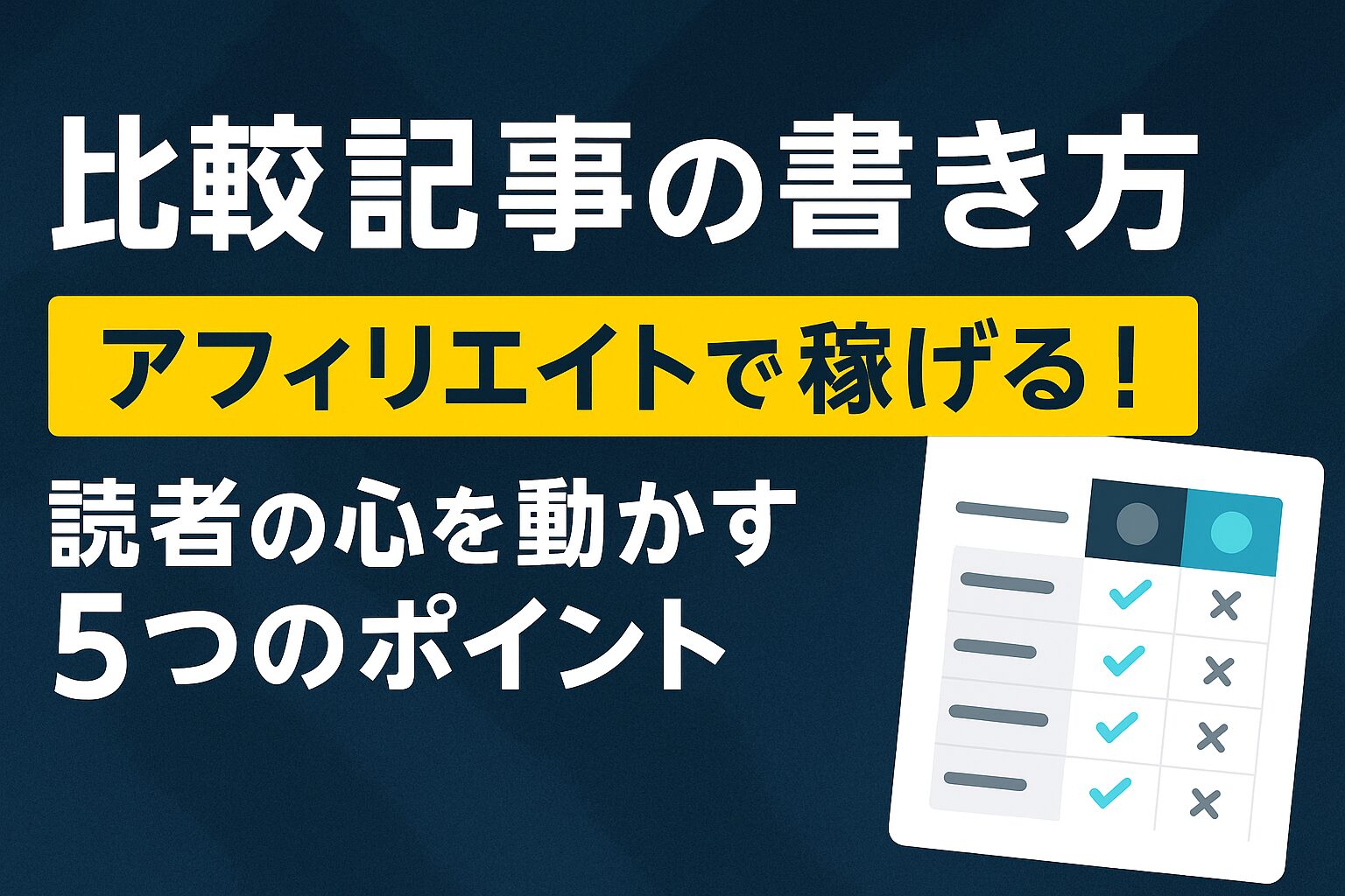 記事の書き方 アフィリエイトで稼げる!比較記事の書き方完全ガイド|読者の心を動かす5つのポイント 「比較記事って稼げるって聞いたけど、どうやって書けばいいの?」ブログを始めたばかりの頃、ぼくも同じ疑問を持っていました。でも、結論から言うと「比較記事」はアフィリエイト収益を加速させる超強力な武器です。たとえば「おすすめのVOD3選」とか「... 2025.10.01 記事の書き方